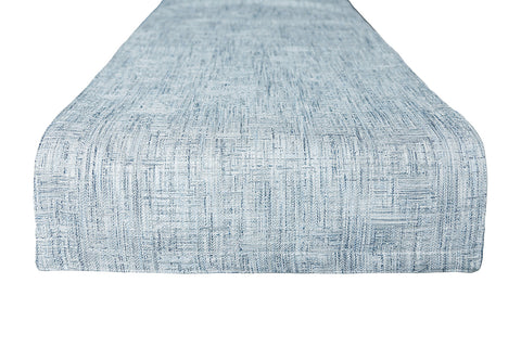 Beautiful woven threads of various blues and grays make this a very versitile table runner.